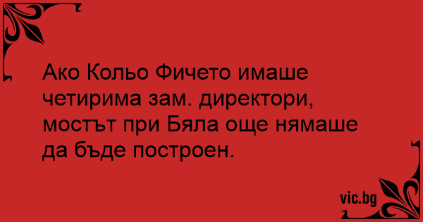 Ако Кольо Фичето имаше четирима зам. директори, мостът при Бяла още нямаше да бъде построен.