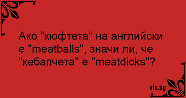 Ако "кюфтета" на английски е "meatballs", значи ли, че "кебапчета" е "meatdicks"?