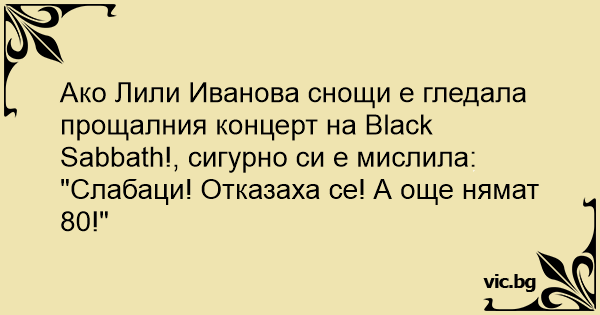 Ако Лили Иванова снощи е гледала прощалния концерт на Black Sabbath!, сигурно си е мислила: