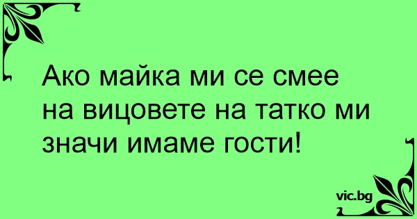 Ако майка ми се смее на вицовете на татко ми значи имаме гости!