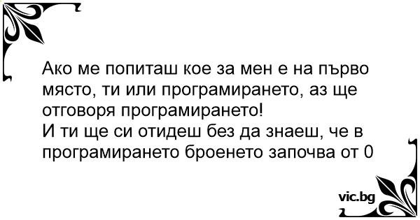 Ако ме попиташ кое за мен е на първо място, ти или програмирането, аз ще отговоря програмирането!