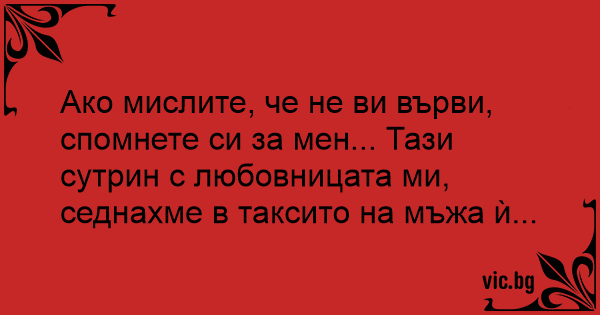 Ако мислите, че не ви върви, спомнете си за мен... Тази сутрин с любовницата ми, седнахме в таксито на мъжа ѝ...