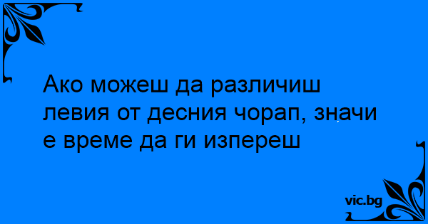 Ако можеш да различиш левия от десния чорап, значи е време да ги изпереш