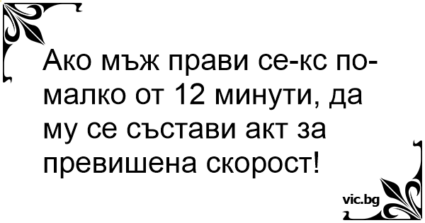 Ако мъж прави cekc по-малко от 12 минути, да му се състави акт за превишена скорост!