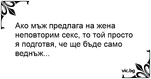 Ако мъж предлага на жена неповторим cekc, то той просто я подготвя, че ще бъде само веднъж...