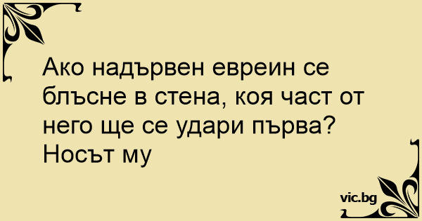 Ако нaдъpbeн евреин се блъсне в стена, коя част от него ще се удари първа?
