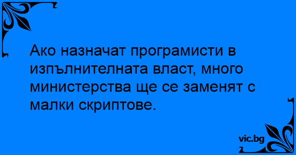 Ако назначат програмисти в изпълнителната власт, много министерства ще се заменят с малки скриптове.