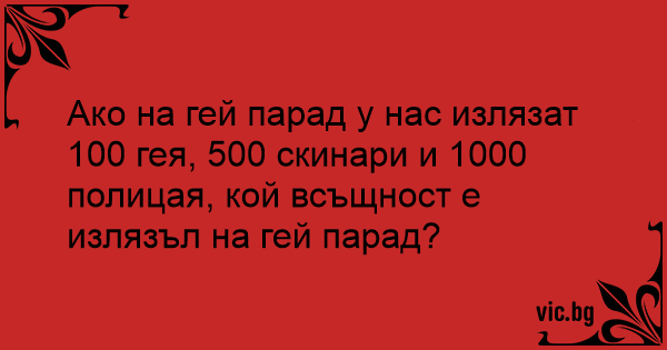 Ако на гeй парад у нас излязат 100 гея, 500 скинари и 1000 полицая, кой всъщност е излязъл на гeй парад?
