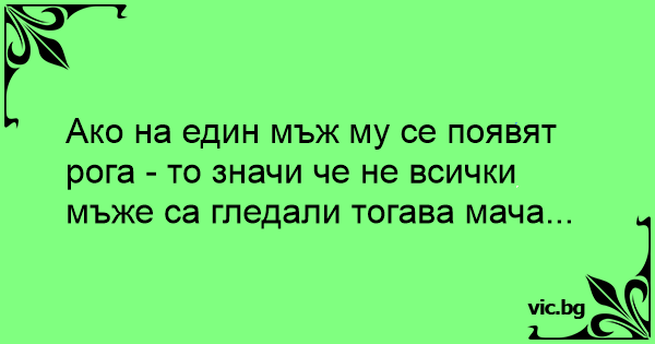 Ако на един мъж му се появят рога - то значи че не всички мъже са гледали тогава мача...