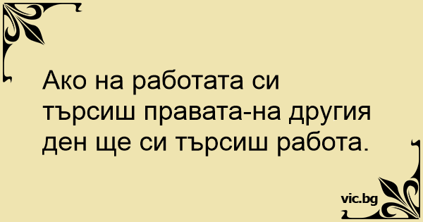 Ако на работата си търсиш правата-на другия ден ще си търсиш работа.