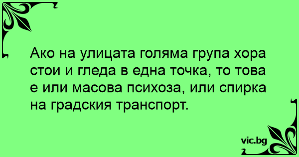 Ако на улицата голяма група хора стои и гледа в една точка, то това е или масова психоза, или спирка на градския транспорт.