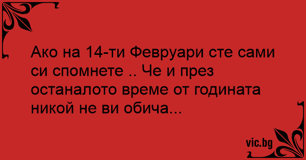 Ако на 14-ти Февруари сте сами си спомнете .. Че и през останалото време от годината никой не ви обича...