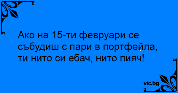 Ако на 15-ти февруари се събудиш с пари в портфейла, ти нито си eбaч, нито пияч!