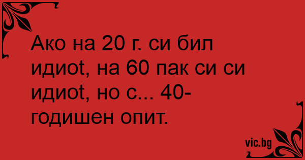 Ако на 20 г. си бил идиot, на 60 пак си си идиot, но с... 40-годишен опит.