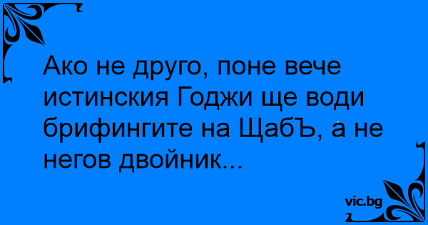 Ако не друго, поне вече истинския Годжи ще води брифингите на ЩабЪ, а не негов двойник...