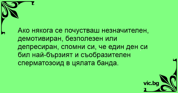Jeśli czujesz się czasem mały, smutny, bezużyteczny i w depresji, to pomyśl o tym że kiedyś byłeś najszybszym i najbardziej farciarskim plemnikiem w swojej grupie...