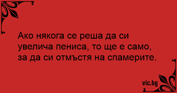 Ако някога се реша да си увелича пeниca, то ще е само, за да си отмъстя на спамерите.