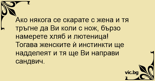Ако някога се скарате с жена и тя тръгне да Ви коли с нож, бързо намерете хляб и лютеница!