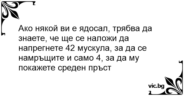Ако някой ви е ядосал, трябва да знаете, че ще се наложи да напрегнете 42 мускула, за да се намръщите и само 4, за да му покажете среден пръст