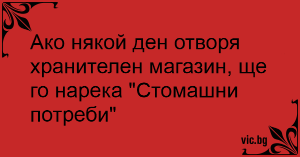 Ако някой ден отворя хранителен магазин, ще го нарека "Стомашни потреби"