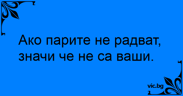 Ако парите не радват, значи че не са ваши.