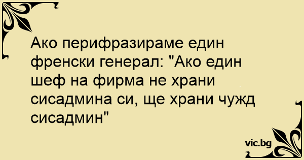 Ако перифразираме един френски генерал: "Ако един шеф на фирма не храни сисадмина си, ще храни чужд сисадмин"
