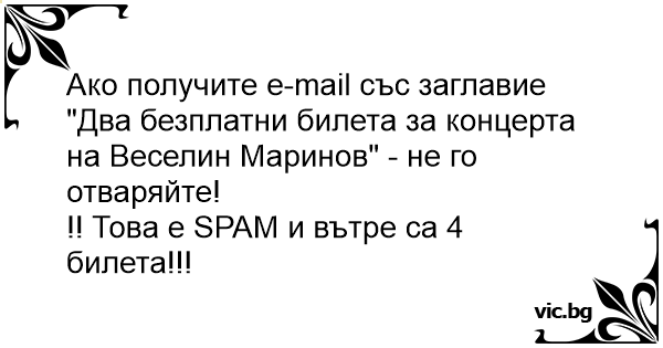 Ако получите e-mail със заглавие "Два безплатни билета за концерта на Веселин Маринов" - не го отваряйте!