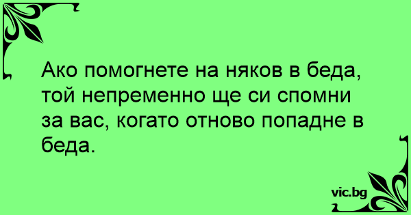 Ако помогнете на няков в беда, той непременно ще си спомни за вас, когато отново попадне в беда.