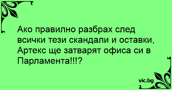 Ако правилно разбрах след всички тези скандали и оставки, Артекс ще затварят офиса си в Парламента!!!?