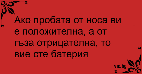 Ако пробата от носа ви е положителна, а от гъзa отрицателна, то вие сте батерия