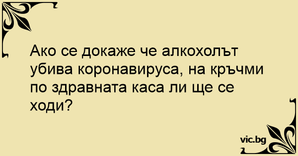 Ако се докаже че алкохолът убива коронавируса, на кръчми по здравната каса ли ще се ходи?