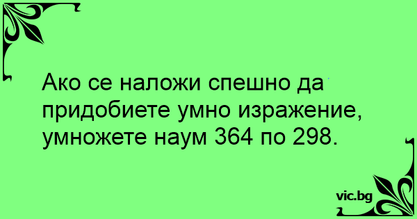 Ако се наложи спешно да придобиете умно изражение, умножете наум 364 по 298.