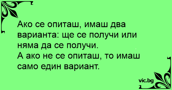 Ако се опиташ, имаш два варианта: ще се получи или няма да се получи.