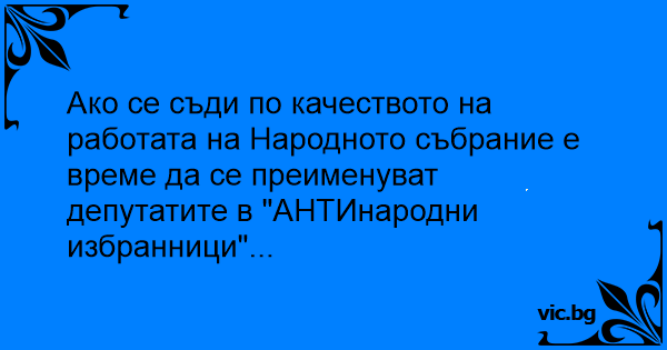 Ако се съди по качеството на работата на Народното събрание е време да се преименуват депутатите в "АНТИнародни избранници"...