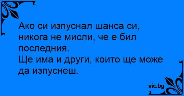 Ако си изпуснал шанса си, никога не мисли, че е бил последния.