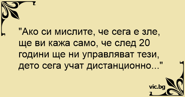 "Ако си мислите, че сега е зле, ще ви кажа само, че след 20 години ще ни управляват тези, дето сега учат дистанционно..."