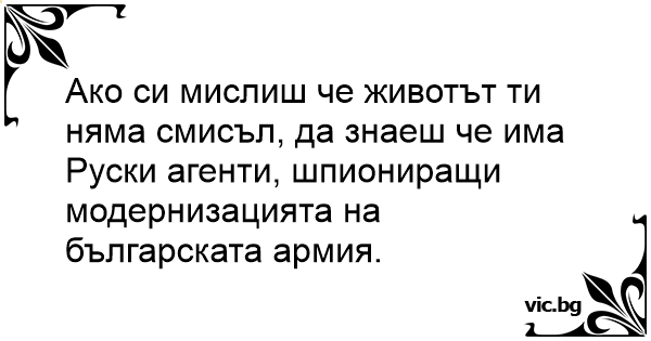 Ако си мислиш че животът ти няма смисъл, да знаеш че има Руски агенти, шпиониращи модернизацията на българската армия.