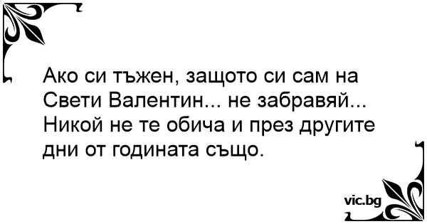 Ако си тъжен, защото си сам на Свети Валентин... не забравяй... Никой не те обича и през другите дни от годината също.