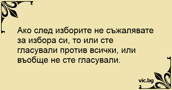 Ако след изборите не съжалявате за избора си, то или сте гласували против всички, или въобще не сте гласували.