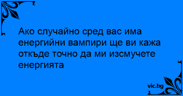 Ако случайно сред вас има енергийни вампири ще ви кажа откъде точно да ми изсмучете енергията
