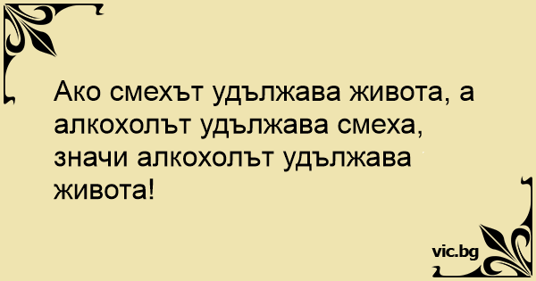 Ако смехът удължава живота, а алкохолът удължава смеха, значи алкохолът удължава живота!