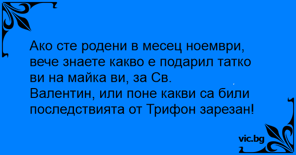Валентин, или поне какви са били последствията от Трифон зарезан!
