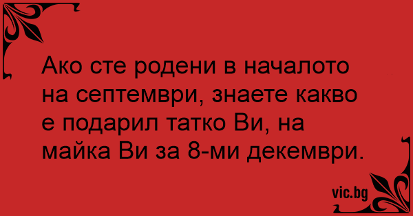 Ако сте родени в началото на септември, знаете какво е подарил татко Ви, на майка Ви за 8-ми декември.