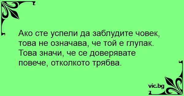 Ако сте успели да заблудите човек, това не означава, че той е глупак. Това значи, че се доверявате повече, отколкото трябва.