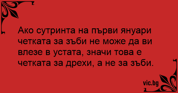 Ако сутринта на първи януари четката за зъби не може да ви влезе в устата, значи това е четката за дрехи, а не за зъби.
