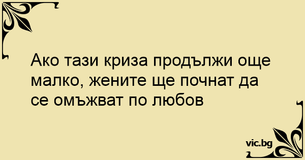 Ако тази криза продължи още малко, жените ще почнат да се омъжват по любов
