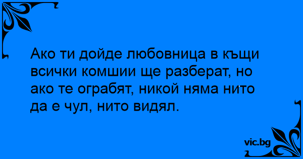Ако ти дойде любовница в къщи всички комшии ще разберат, но ако те ограбят, никой няма нито да е чул, нито видял.