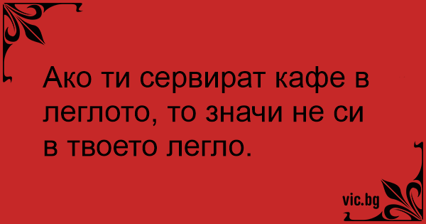 Ако ти сервират кафе в леглото, то значи не си в твоето легло.