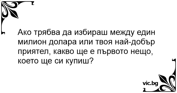 Ако трябва да избираш между един милион долара или твоя най-добър приятел, какво ще е първото нещо, което ще си купиш?