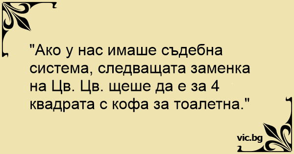 "Ако у нас имаше съдебна система, следващата заменка на Цв. Цв. щеше да е за 4 квадрата с кофа за тоалетна."